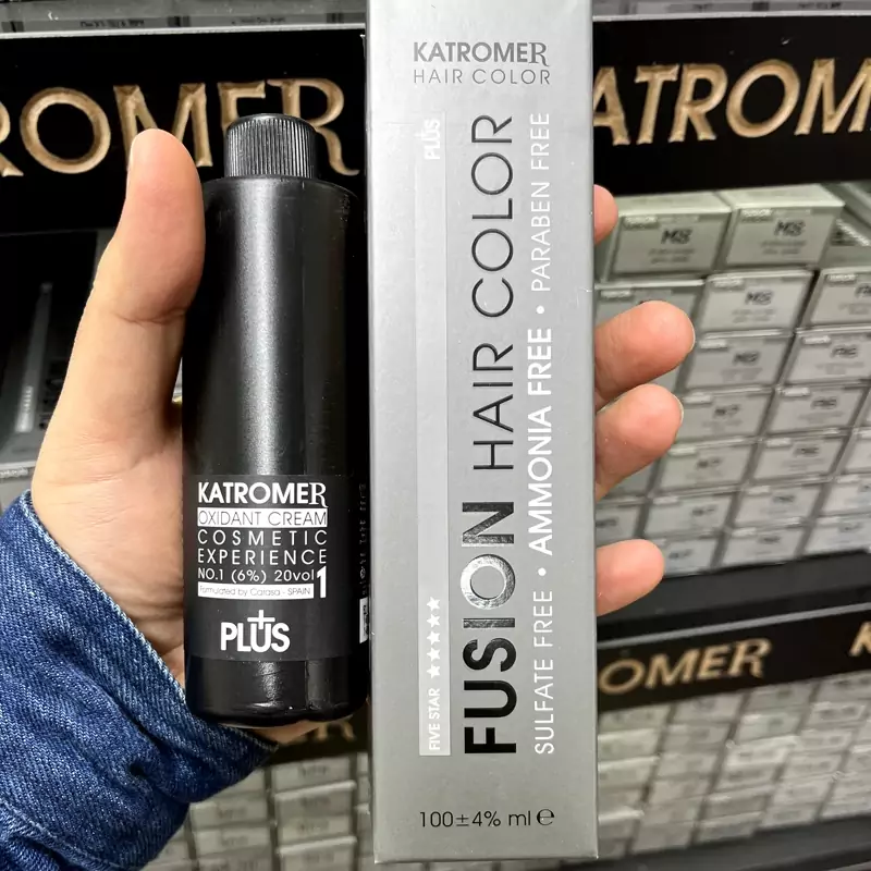 رنگ بلوند شکلاتی تیرهW5 ،6.7 ، رنگ مو کاترومر بدون آمونیاک و یک عدد اکسیدان 150 میلی لیتر