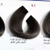رنگ بلوند دودی تیره6.1 ،رنگ مو کم آمونیاک پیلون و یک عدد اکسیدان