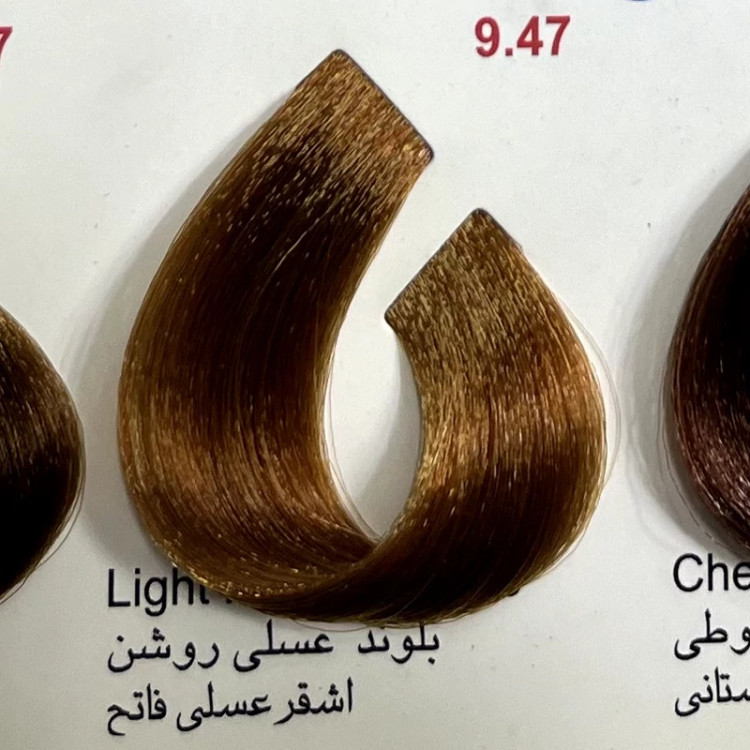 رنگ بلوند عسلی روشن 9.47 ،رنگ مو کم آمونیاک پیلون ویک عدد اکسیدان