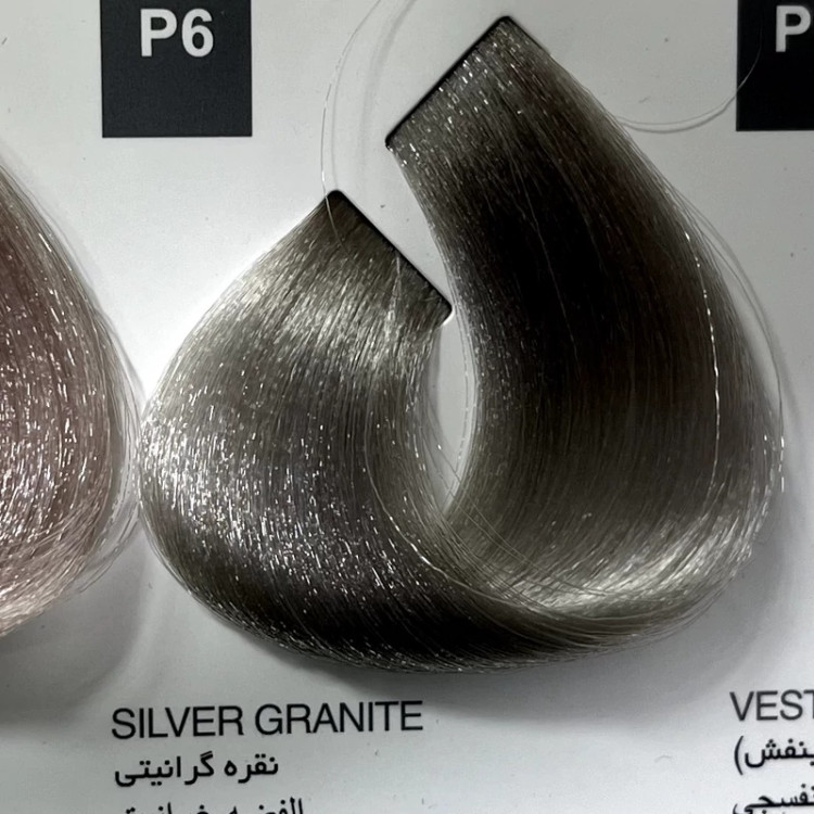 رنگ نقره گرانیتی P6 ،رنگ مو کاترومر بدون آمونیاک و یک عدد اکسیدان 150 میلی لیتر