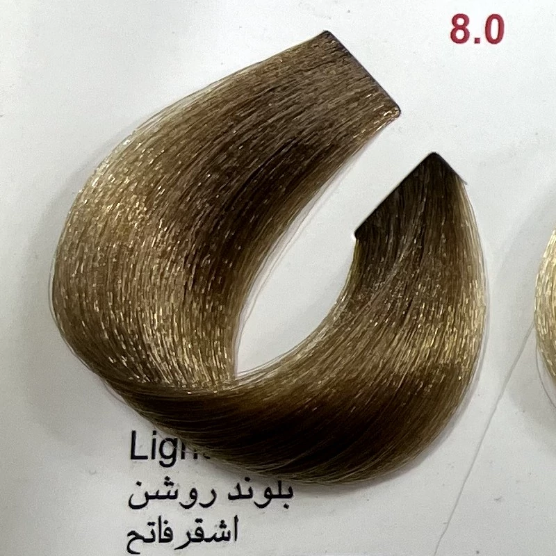 رنگ بلوند روشن8.0 ،رنگ مو کم آمونیاک پیلون و یک عدد اکسیدان