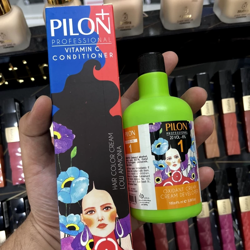 رنگ بلوند روشن8.0 ،رنگ مو کم آمونیاک پیلون و یک عدد اکسیدان