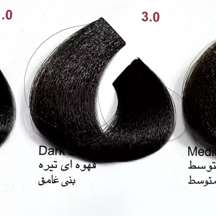 رنگ قهوه ای تیره 3.0 ،رنگ مو کم آمونیاک پیلون و یک عدد اکسیدان