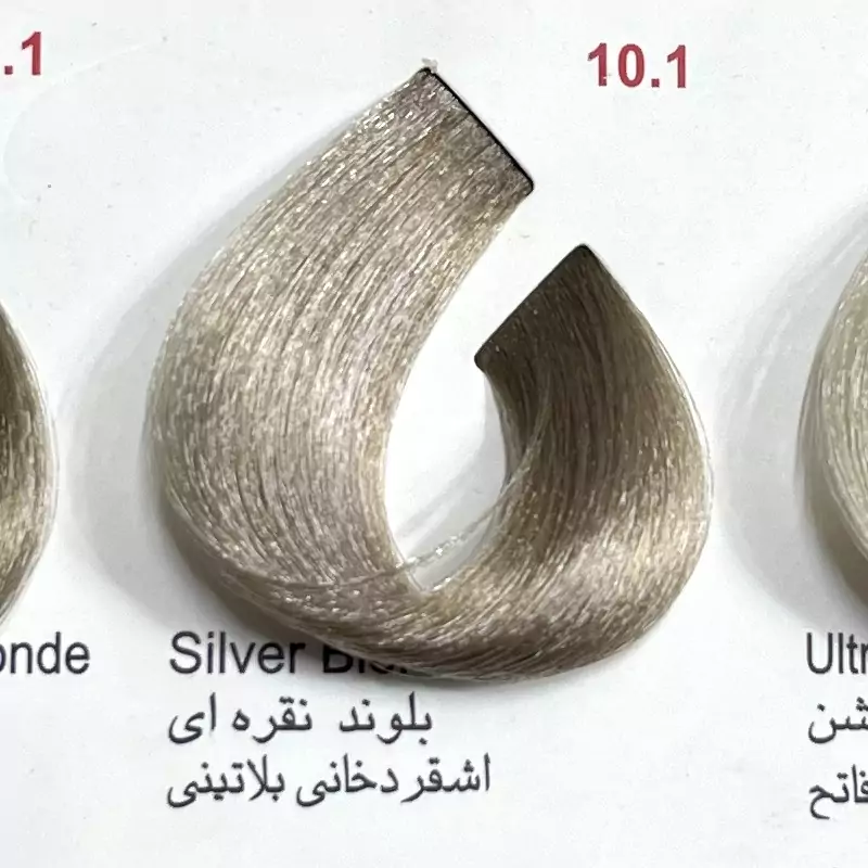 رنگ بلوند نقره ای 10.1 ،رنگ مو کم آمونیاک پیلون و یک عدد اکسیدان