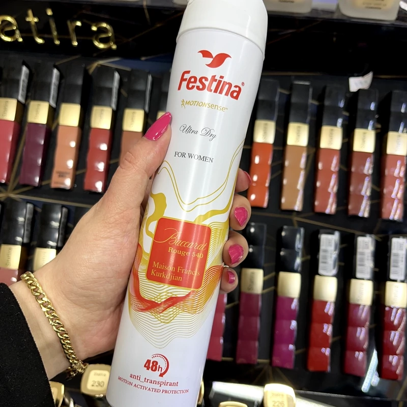 اسپری خوش بو کننده بدن زنانه فستینا مدل باکارات رژ 540 حجم 200 میای لیتر رایحه گرم و شرقی
