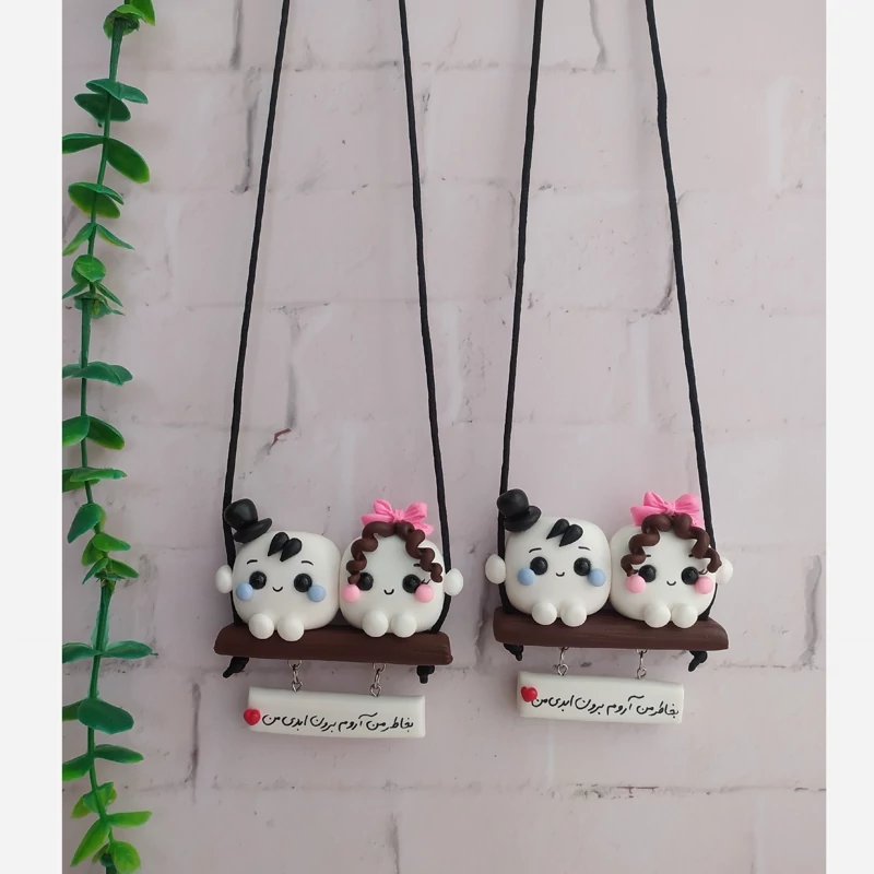 آویزماشین قند دوتایی موفر قهوه ای پاپیون صورتی