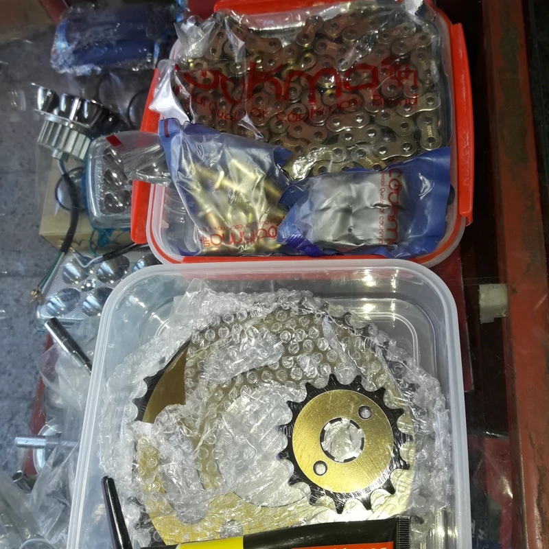 مرغوبترین دنده زنجیر ،دنده عقب وجلو فولادی ،زنجیر بوشدار وطلایی بدون شول وسفت شدن،دارای بوش چرخ عقب وپیچ دنده زنجیر وخار توپی عقب مخصوص زنجیر ،بسته بندی شکیل ومحکم